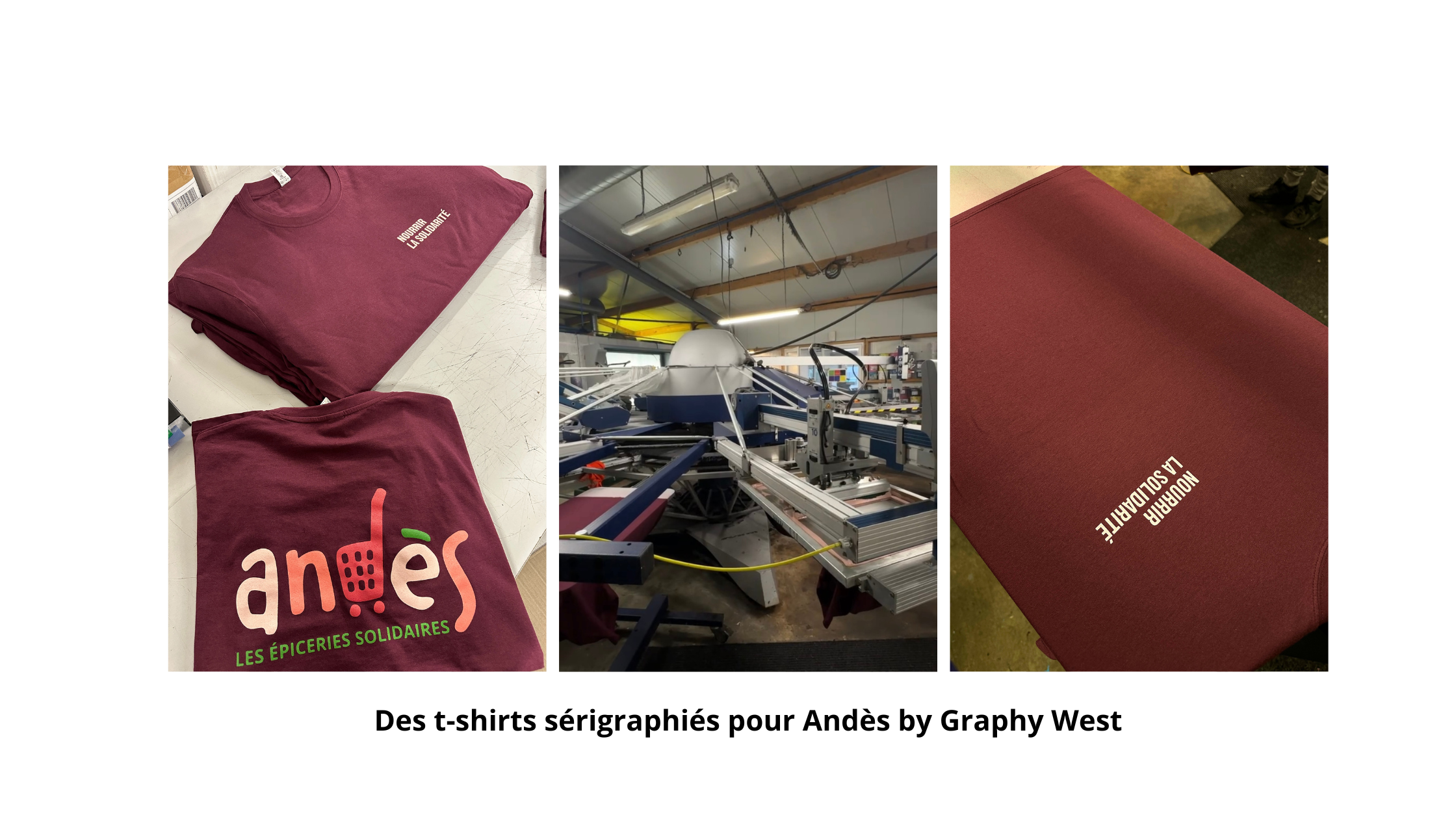 Chez Graphy West, nous sommes ravis de vous dévoiler l’une de nos récentes réalisations : des t-shirts personnalisés en sérigraphie pour ANDES, le premier réseau national des épiceries sociales et solidaires en France.
