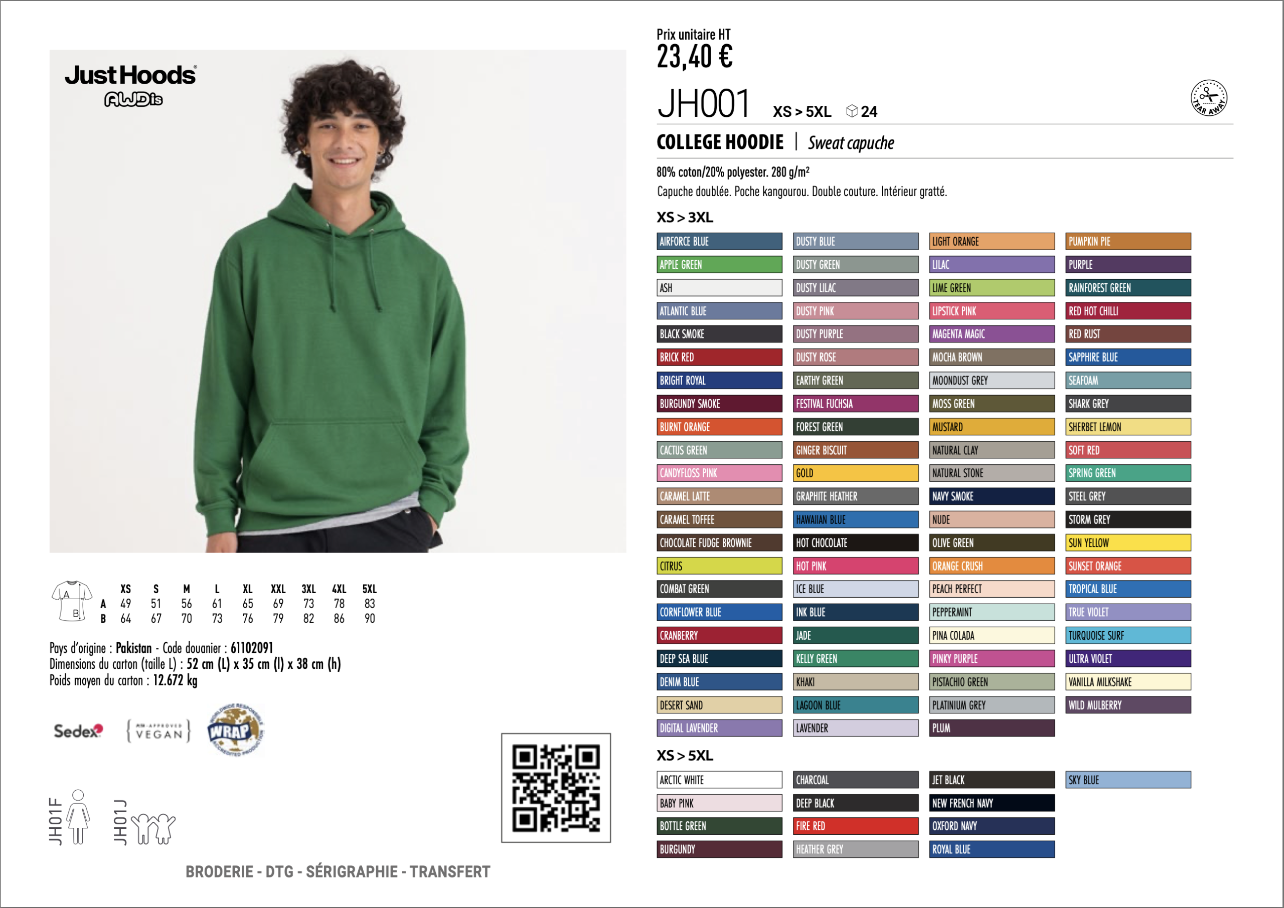 Sweat 80% Coton / 20% Polyester - 280 Gr